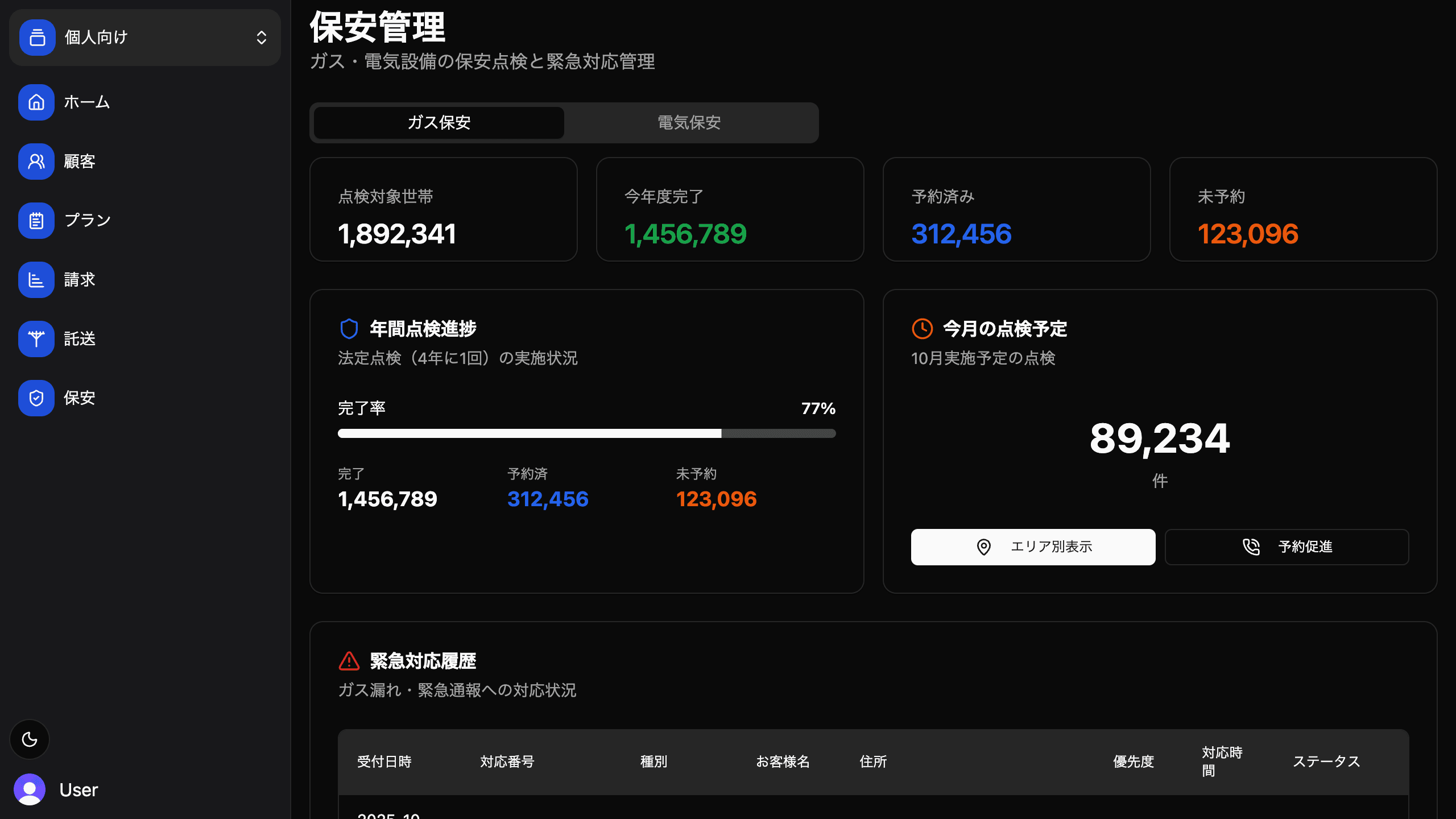 顧客情報の管理から、プラン設定、料金計算、請求処理、そして託送・保安・外部システム連携に至るまで、日々の運用をクラウド上でシームレスに統合します。
